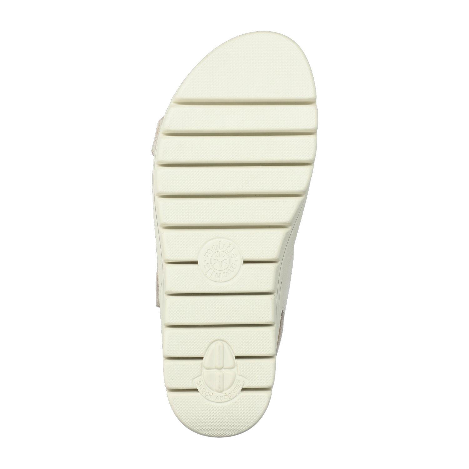 Féminine et élégante, cette sandale à talon compensé, garantit un chaussant idéal. La semelle intérieure amovible qui intègre la SOFT-AIR Technologie et le SHOCK-ABSORBER présent dans la semelle extérieure, contribuent à réduire les chocs au minimum, pour une marche tout en douceur et sans fatigue. Tous les modèles MOBILS ergonomic sont conçus avec un supplément de largeur et offrent ainsi plus de place à l'avant des chaussures. Cette sandale dispose de brides à bandes agrippantes qui sont joliment décorées d'un ornement. La doublure en cuir favorise un climat sain et amène un confort exceptionnel.