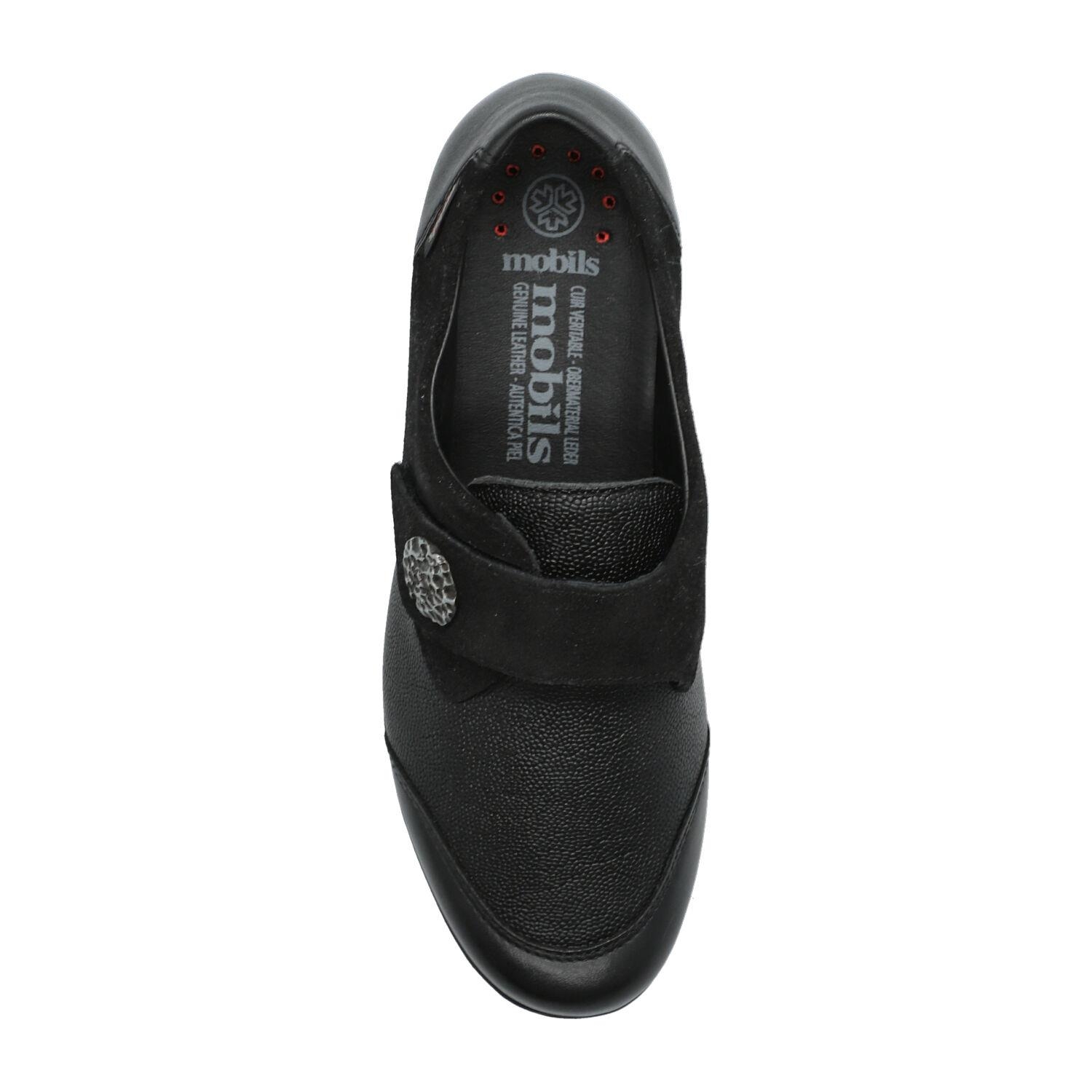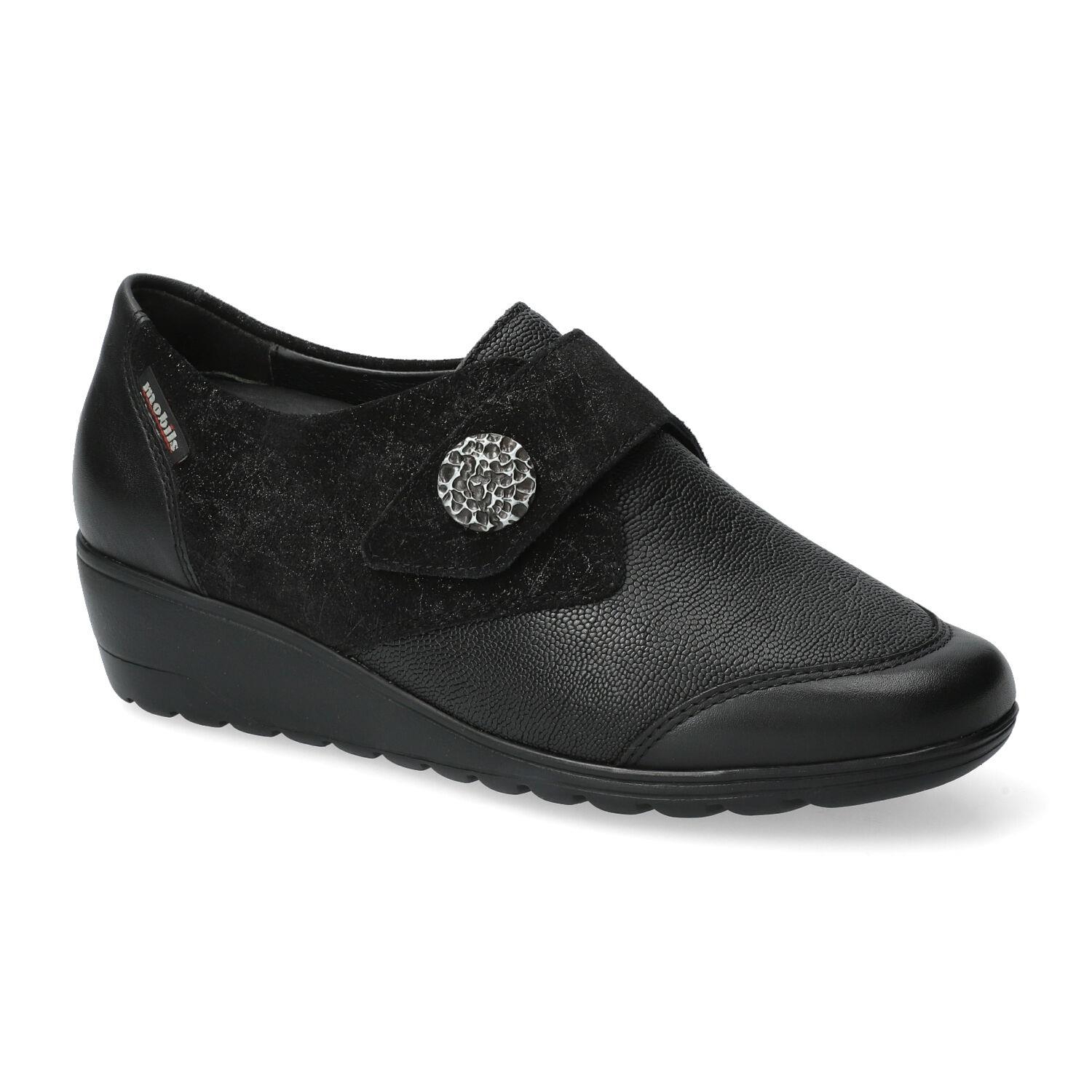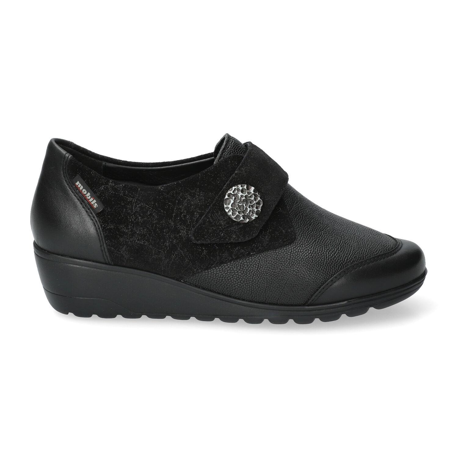 Facile à enfiler et confortable, cette chaussure s'accordera à toutes vos envies. Le SHOCK-ABSORBER présent dans la semelle extérieure, associé à la semelle intérieure amovible qui intègre la SOFT-AIR Technologie, contribuent à réduire les chocs au minimum pour une marche tout en douceur et sans fatigue. Le MATELASSAGE INTÉGRAL offre un bien-être supplémentaire. Cette chaussure basse à large bride et bande agrippante est joliment décorée d'un ornement. La doublure textile-cuir garantit un chaussant optimal et un maintien parfait du cou-de-pied et du talon d'Achille.